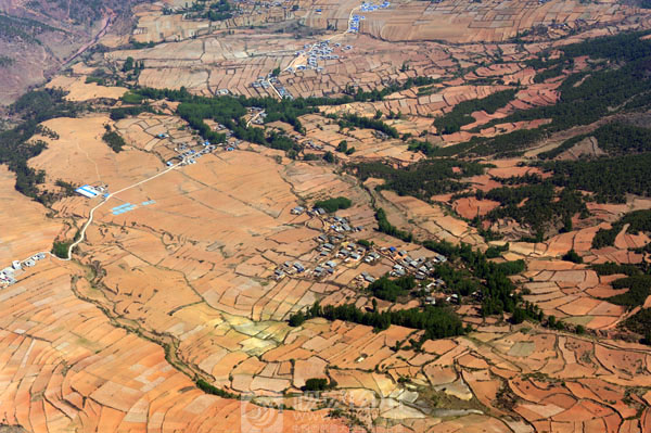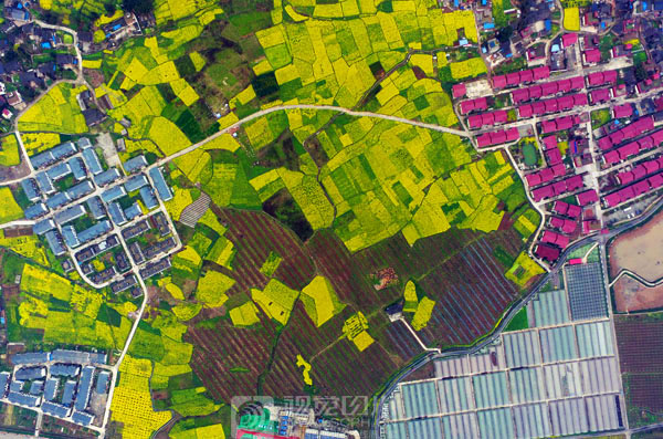 9月16日,乘坐从成都飞往西昌的航班,从高空中俯瞰,弯曲的小路、块状的田野、积木样的村庄和城镇、茁壮成长的秧苗、茂盛的树木等点、线、面的元素构成锦绣四川美图。