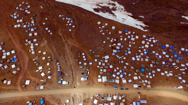 5月8日,一年一度的挖虫草季节,海拔4000多米的理塘县,群众在雪山下搭建起“帐篷村”,密密麻麻的帐篷颇为壮观。