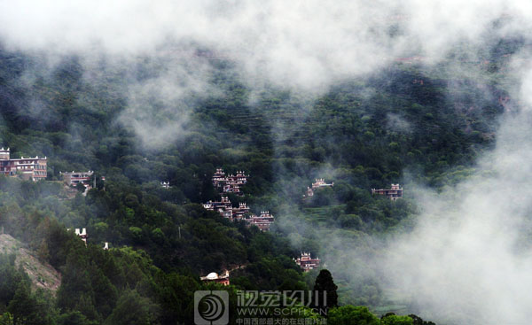 6月22日,距甘孜州丹巴县8公里的甲居藏寨笼罩在云雾中,在绿色山林的衬托下美轮美奂。