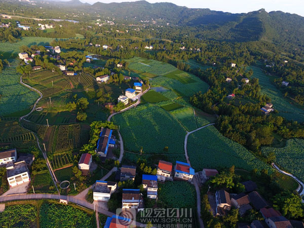 6月27日,蓬安县锦屏镇西拱桥村和当地脱贫奔康产业园。