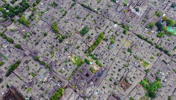 9月3日,高空俯拍阆中古城,古色古香的民居和花草树木相互辉映。