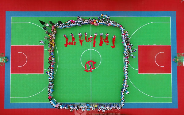10月9日,阆中市思依镇小垭中心学校的操场上,上百名中小学生围成一圈观看水袖舞表演。