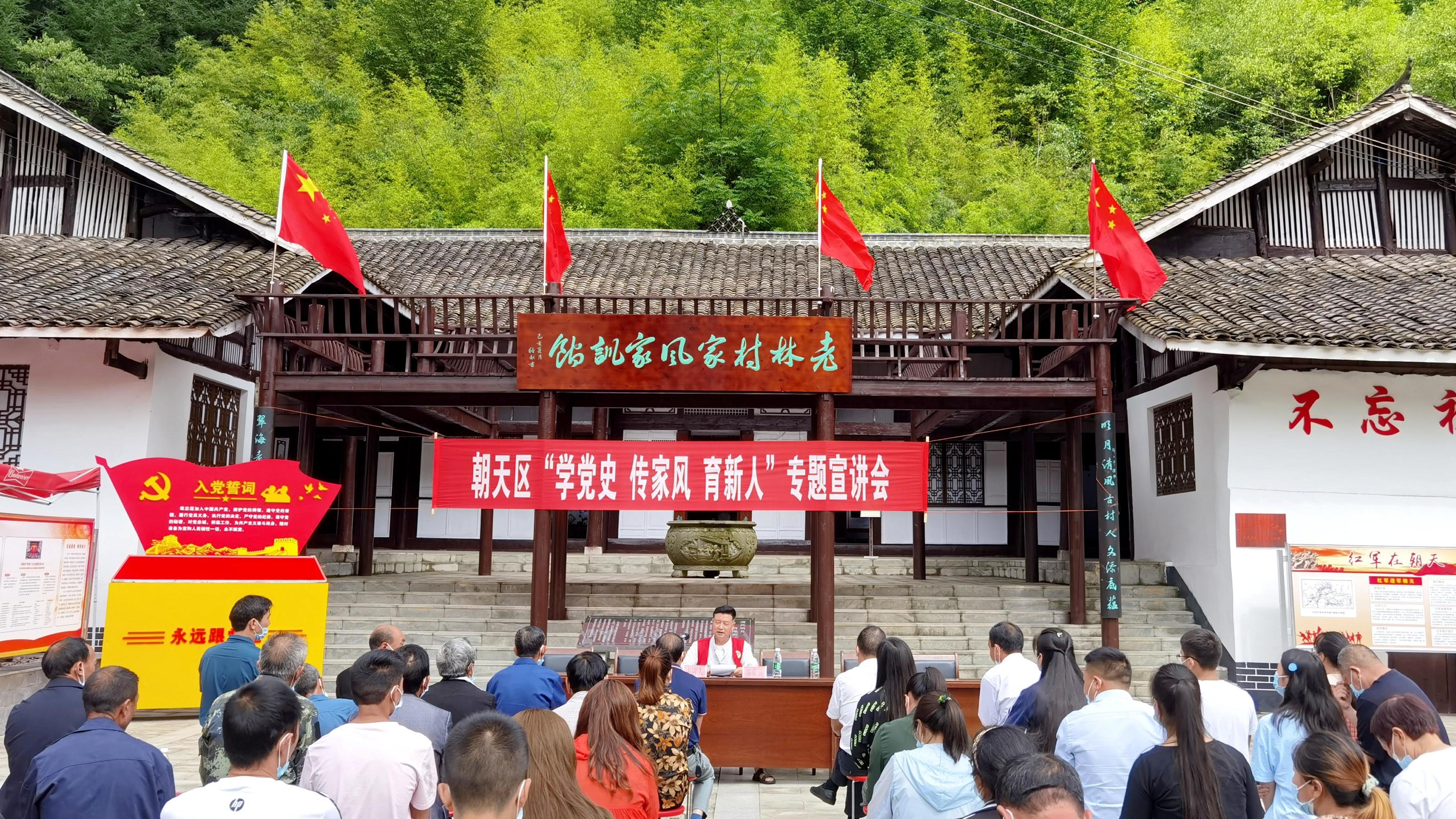 广元市朝天区家庭教育指导团成员在老林村家风家训馆前开展专题宣讲。