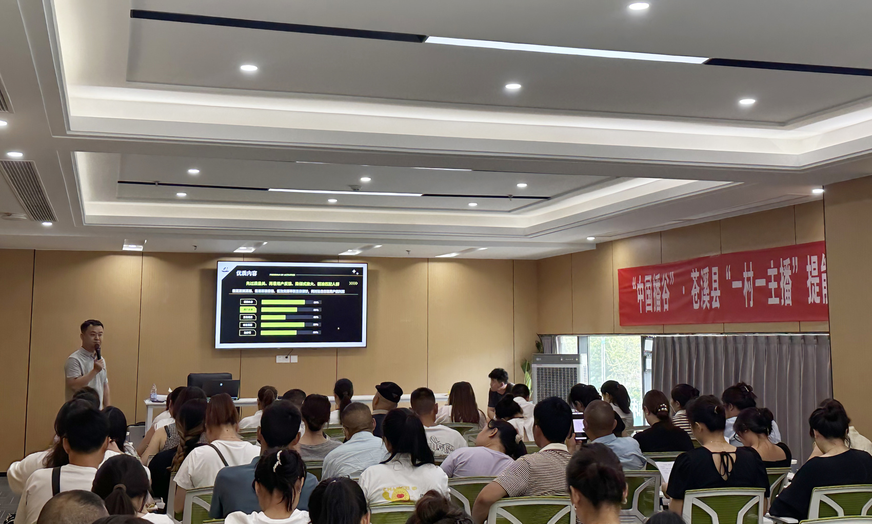 四川苍溪县“一村一主播”培育工程第二期培训课程现场。