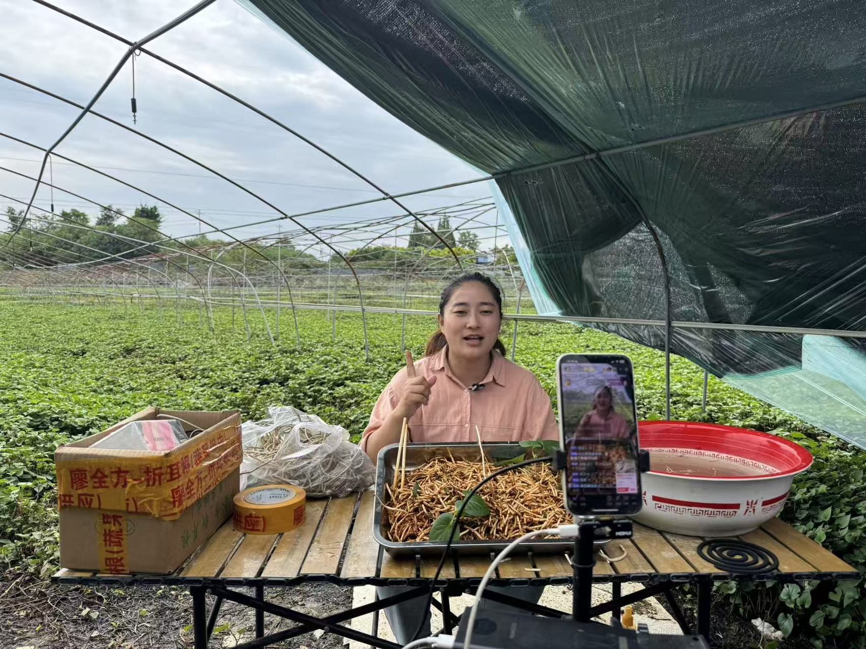 今年三月,他组建起专业的直播团队,通过社交平台展示农场实况、推广宣传折耳根。