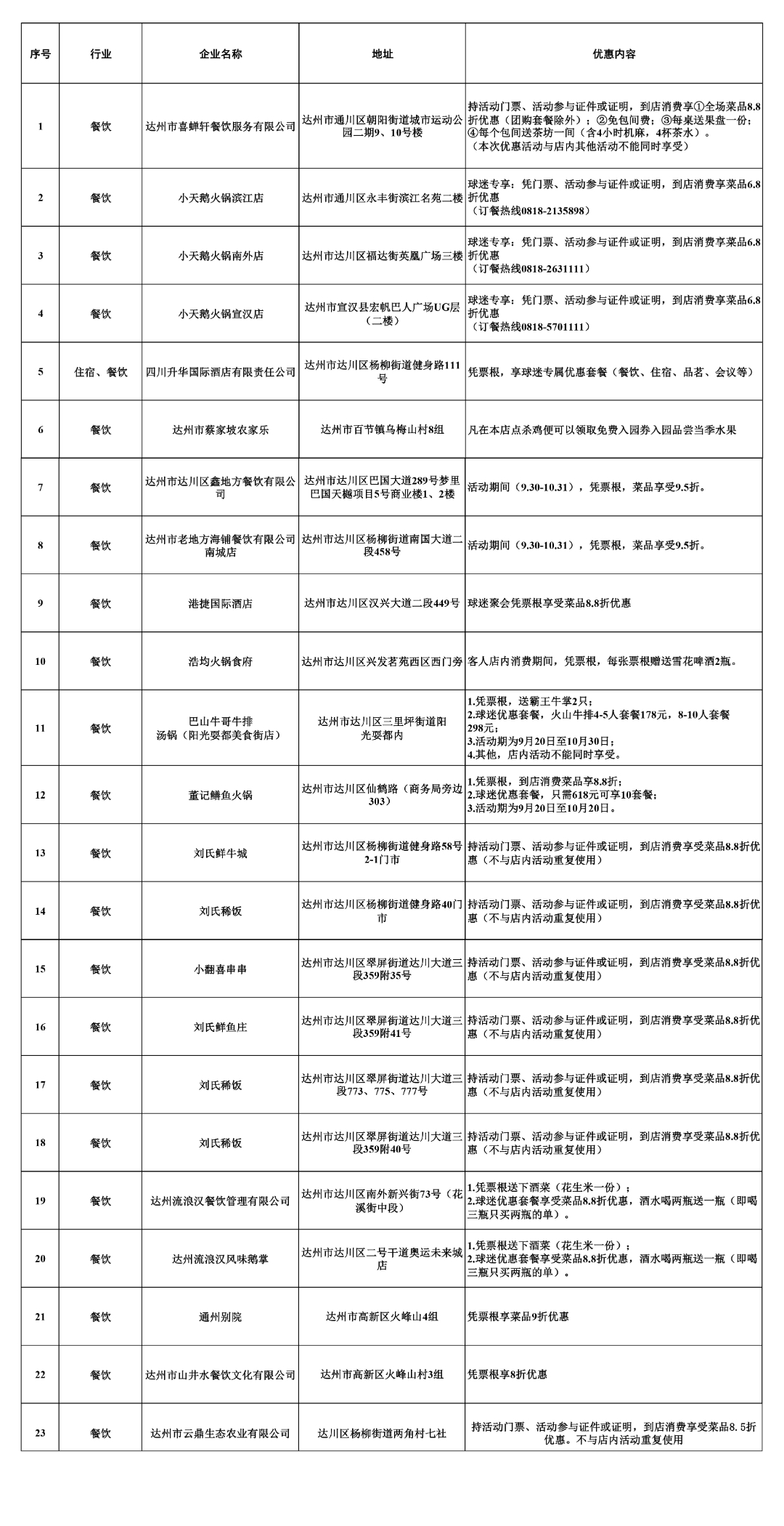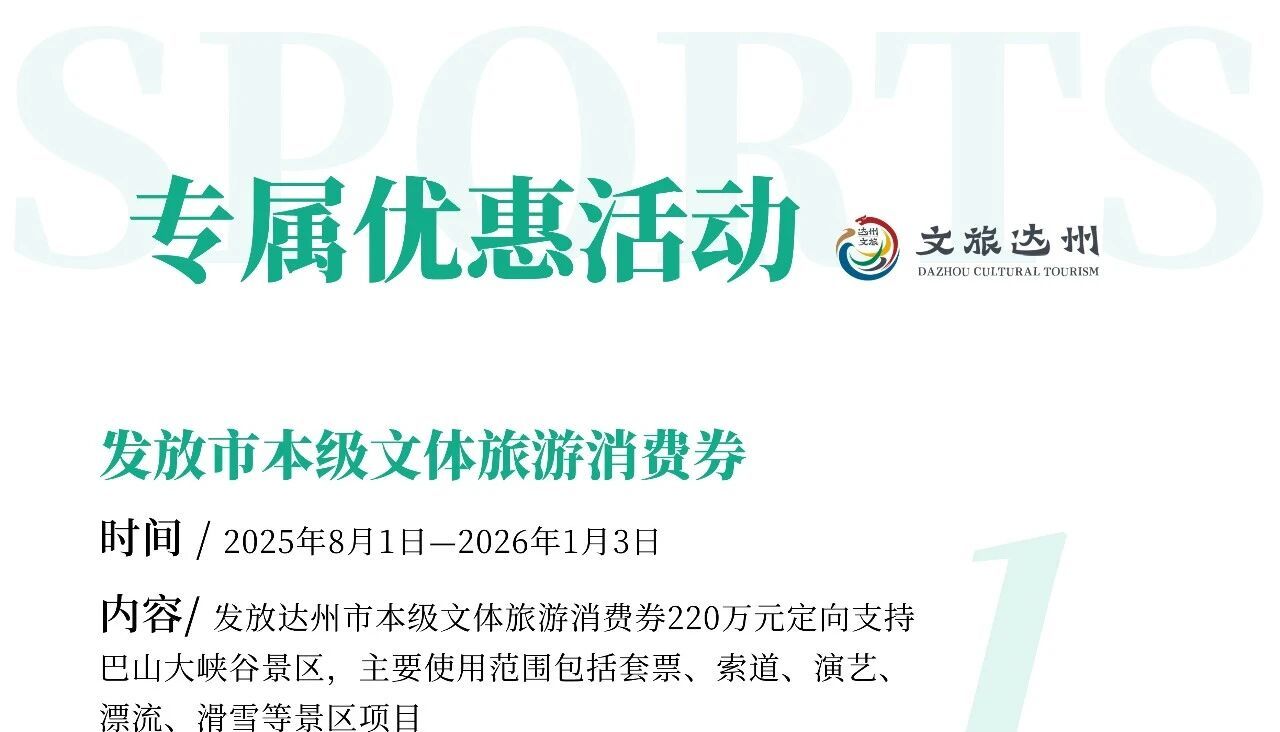 此外,达州市还推出了景区、酒店、民宿餐饮、KTV特别优惠政策。