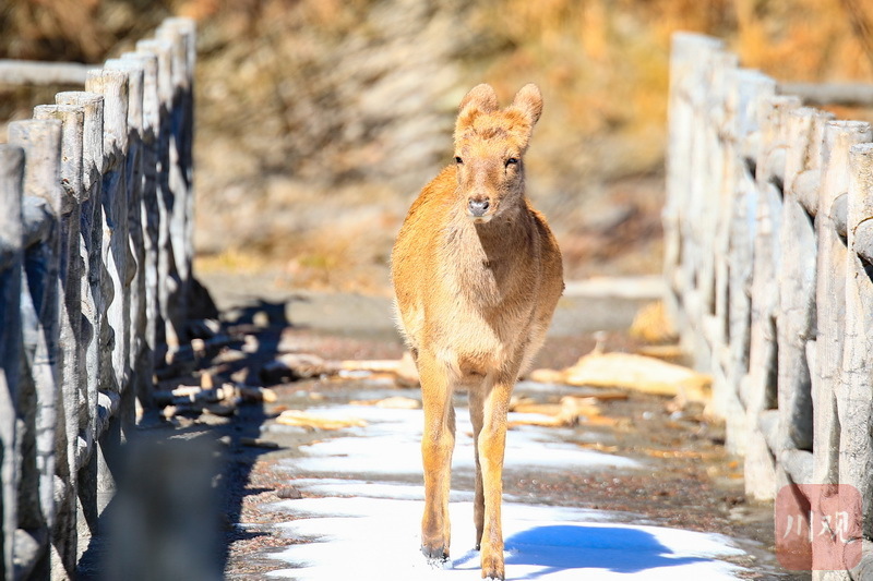 1月13日,经历连日暖阳,位于雅安天全县的二郎山喇叭河逐渐褪去“冬装”,偶有残雪的景区道路旁,不时有毛冠鹿、水鹿、藏酉猴等野生动物现身,毫不怯场地与路人互动。