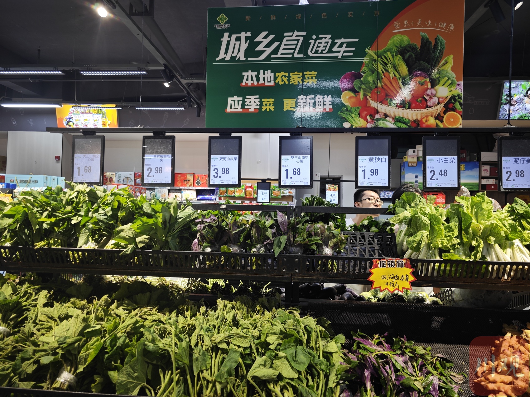 这些带着泥土气息的应季蔬菜,搭上 “城乡直通车” 后去了哪里?在兴文县汇万佳超市生鲜区,“城乡直通车·本地农家菜” 专柜格外醒目,麒麟苗族乡的血皮菜、南瓜尖,僰王山镇的青豇豆、茄子空心菜等新鲜时蔬整齐摆放,吸引众多市民选购。