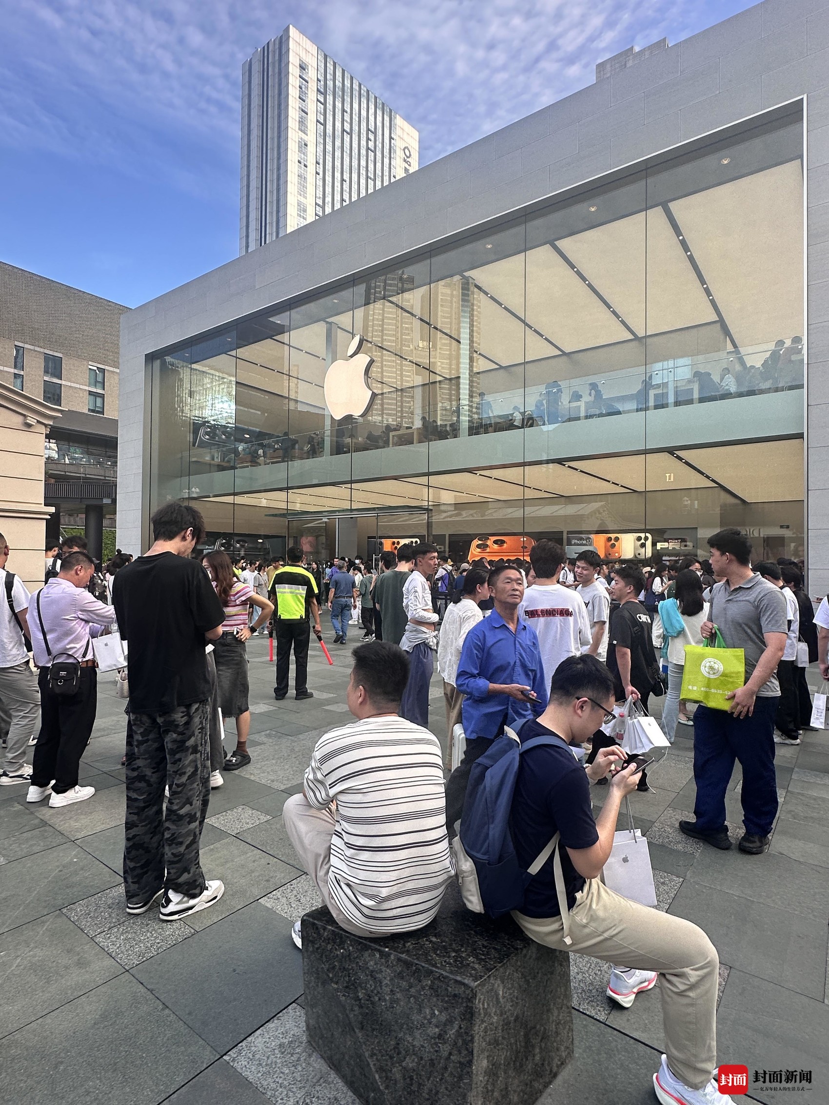 9月19日,全国多地苹果门店出现排队情况。19日下午,封面新闻记者来到成都太古里苹果店外,发现有数十位消费者在门口排队等待,领取自己抢购的新机。“我是买了iphone17 pro max,这次购机是因为从芯片到外观,整体改变提升比较大,所以就买了。”在现场排队领取自己手机的陶先生告诉记者。