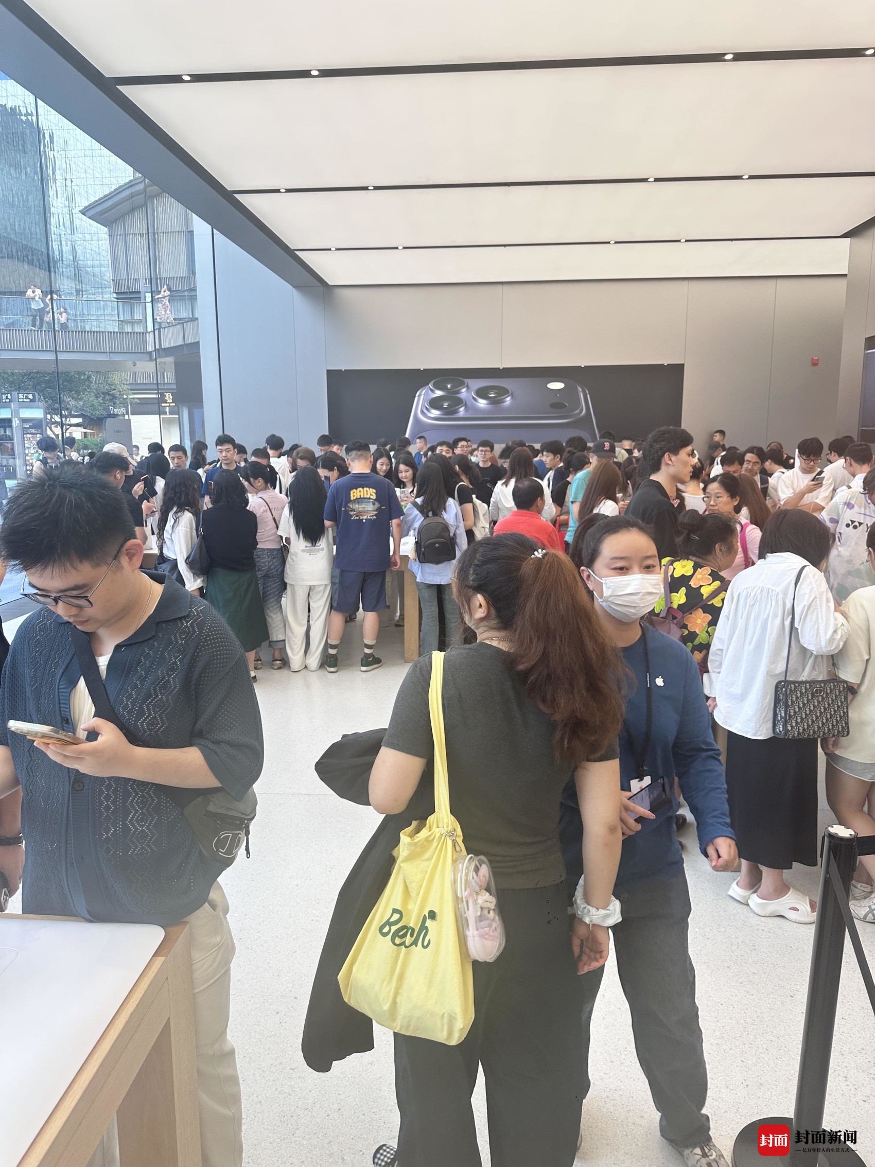 19日,苹果店内外大量消费者聚集。(封面新闻记者拍摄)