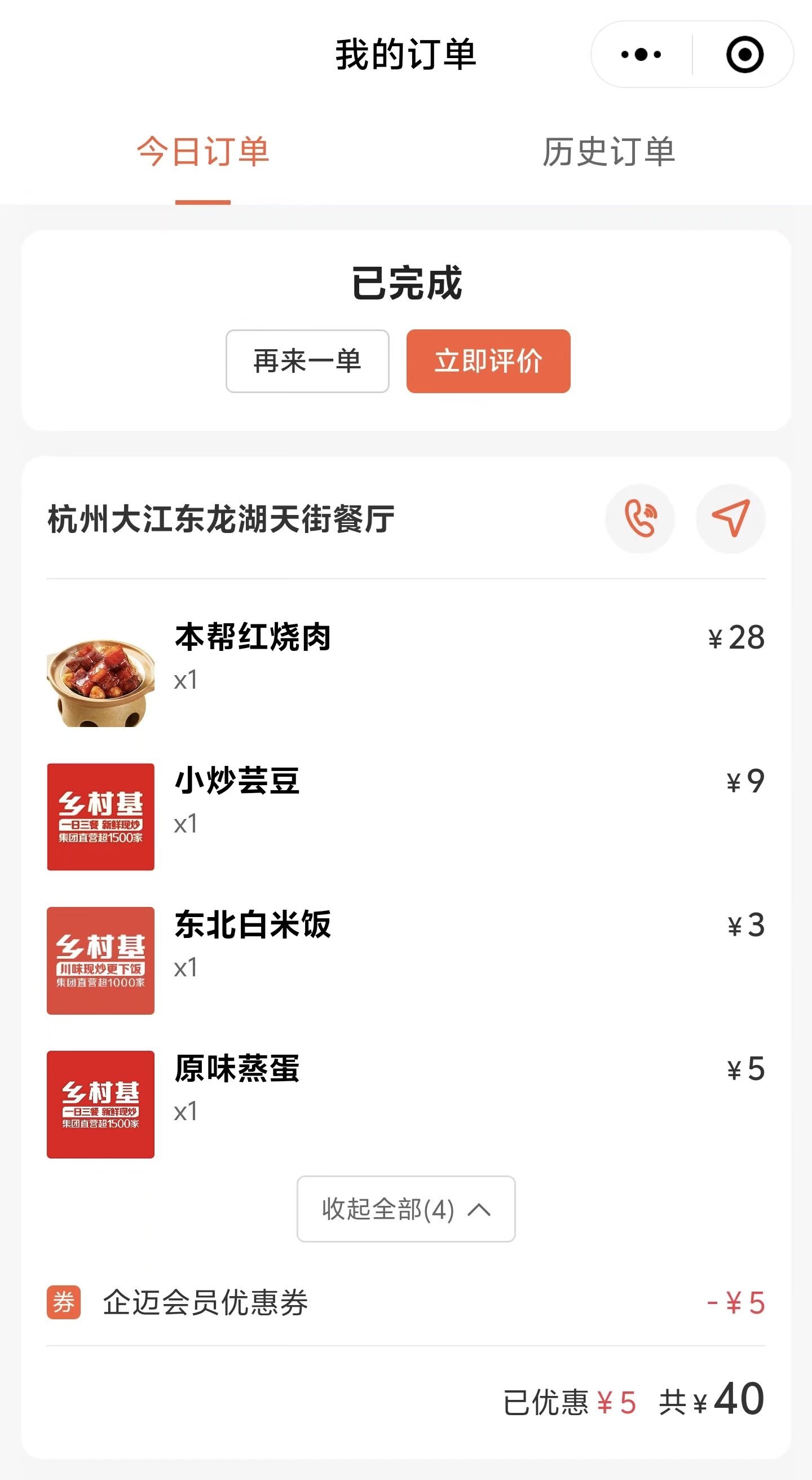 在乡村基杭州大江东龙湖天街餐厅用餐时,他注意到,一份“本帮红烧肉”的价格标签上,写着价格28元,非会员价特地用红色标了出来,为24.64元。除了本帮红烧肉,崔先生还拿了一份9元的小炒芸豆、5元的原味蒸蛋和3元的东北白米饭。