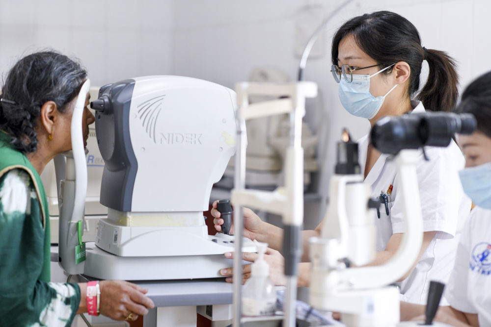 2023年9月15日,在新疆喀什地区英吉沙县人民医院,来自山东省济宁市兖州区人民医院的援疆医生石文芳(中)为患者检查。近年来,对口援疆省市持续选派大量医疗人才,为守护新疆各族群众生命健康作出了突出贡献。受益于医疗人才“组团式”援疆支持,新疆受援医院临床救治能力大幅提升,医院管理体系不断完善,在学科建设、人才培养、医院管理水平等方面取得了显著进步,新疆各族群众的健康获得感不断提升。