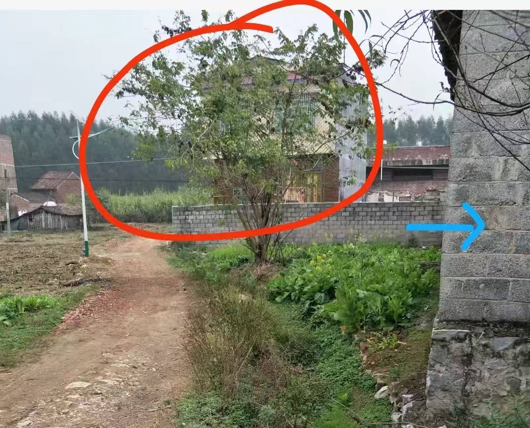 红色圈里为凶手家,蓝色箭头为被害人家。 受访者供图