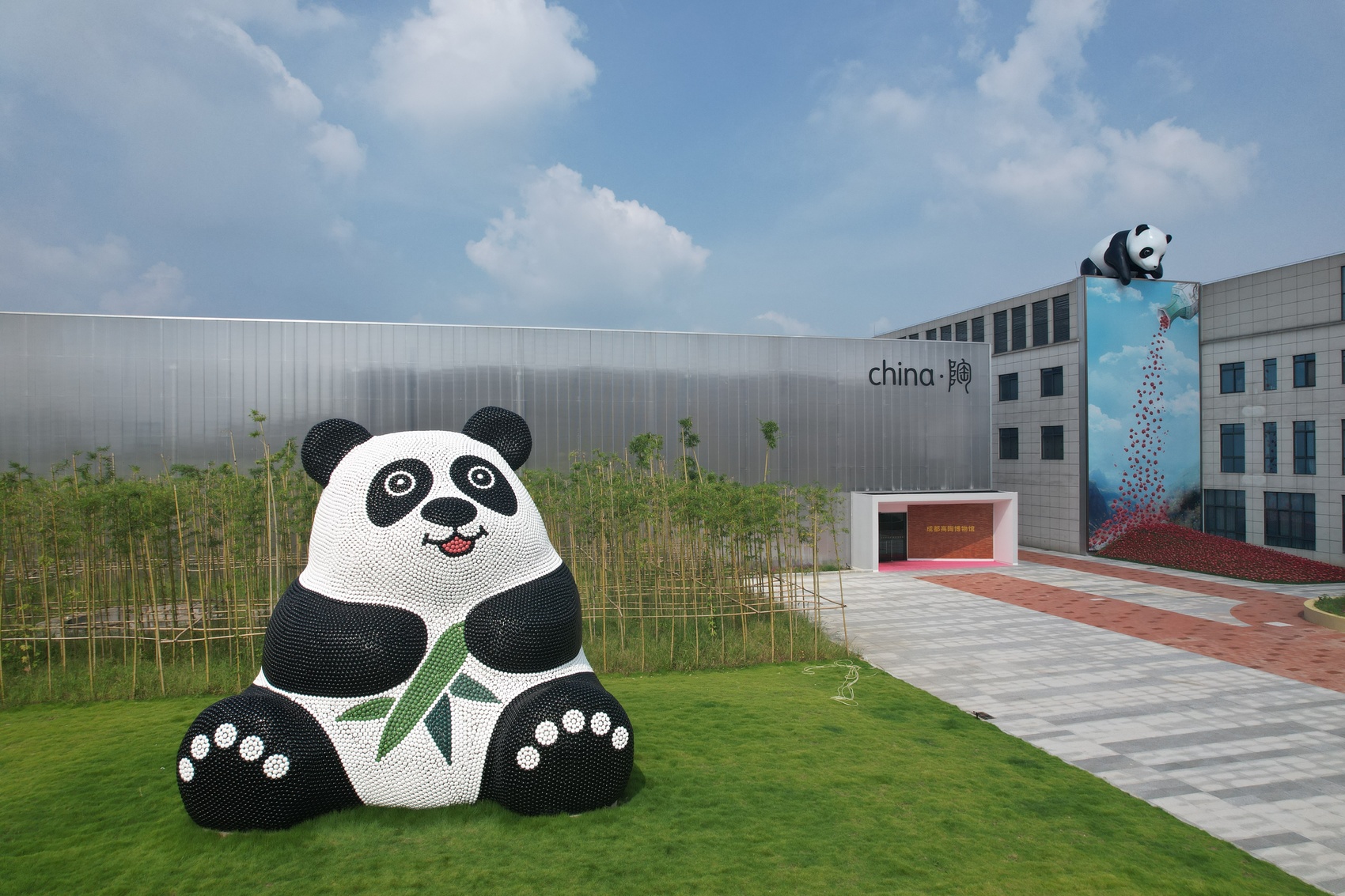 成都高陶博物馆外的大熊猫陶瓷雕塑。