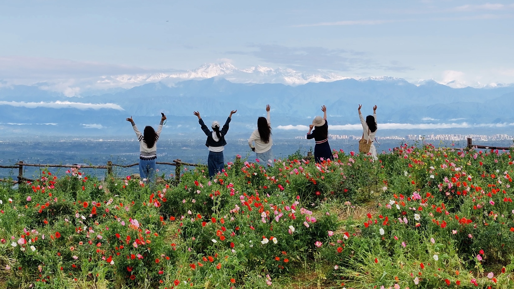 远看雪山,近赏花海。距长秋月观景台不远处,160余亩的高山花海即将全面呈现,格桑花、大丽花、鼠尾草等已“迫不及待”抢先绽放。“高山花海种有30余种花卉,按品种不同,开花时间覆盖每个季节,将呈现出四季花海的美景。”