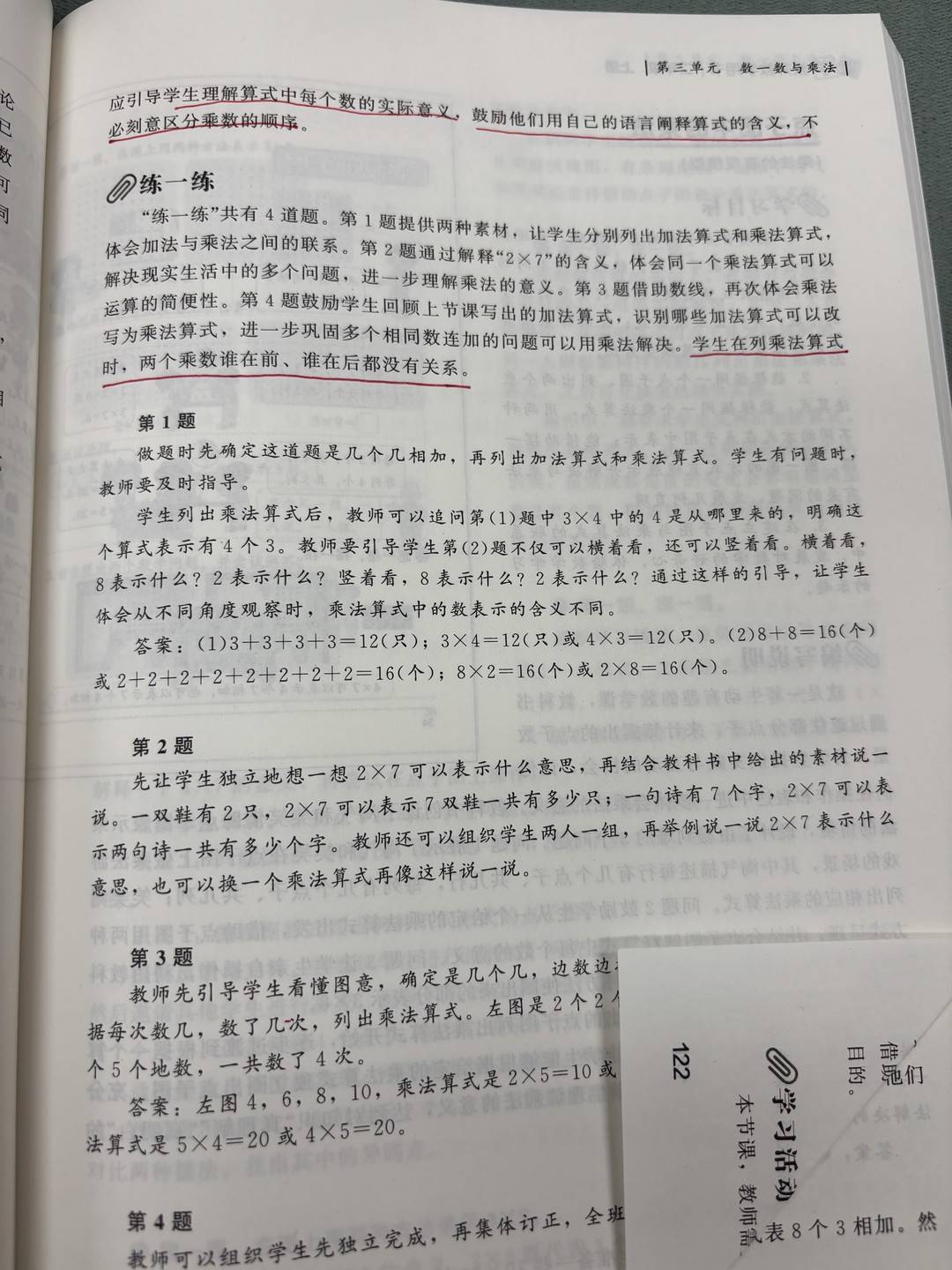 马骄表示,所用教师用书提醒“乘数谁在前谁在后没关系”