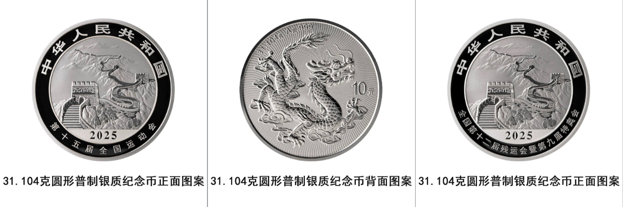 ▷中国人民银行定于9月25日发行第十五届全国运动会中国龙加字银质纪念币一套,共2枚,均为中华人民共和国法定货币。