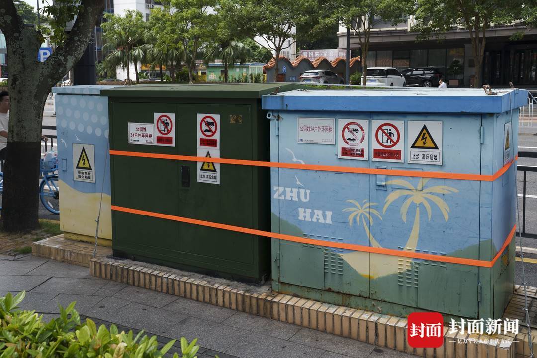 9月23日,珠海市香洲区路边被架构的电力设施。
