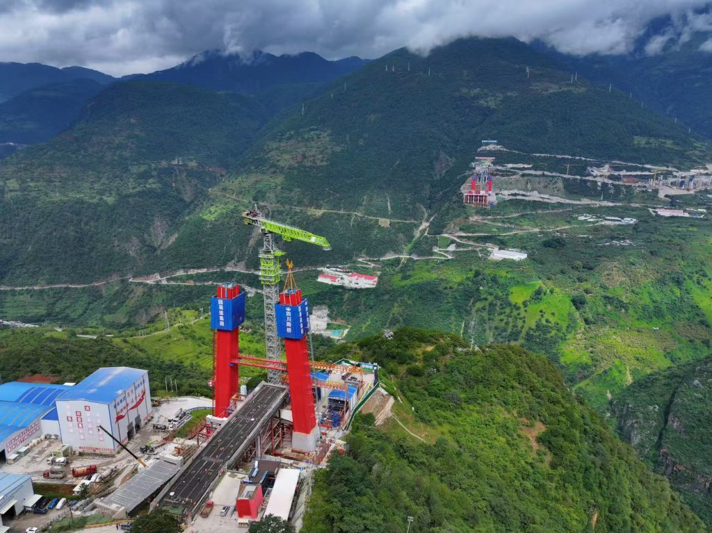 近日,西昌—香格里拉高速公路(西香高速)泸沽湖特大桥施工现场,“Z”字形的施工便道一路从峡谷延伸到山顶。高山峡谷间,这座世界最大跨径空间缆悬索桥两侧索塔正快速“拔高”。