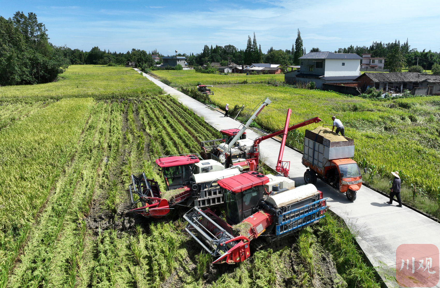 崇州市杨柳农民专业合作社正在收水稻。