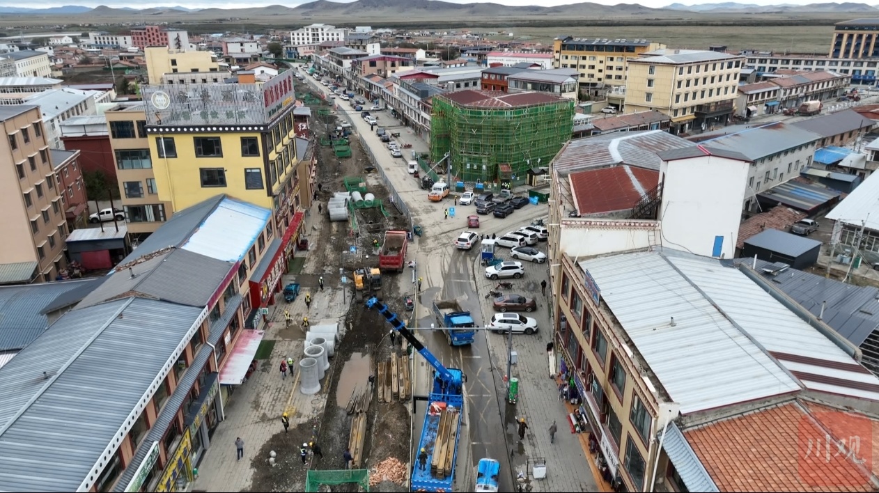一条条新铺的雨污管网、一面面焕新的建筑外墙、一排排新增的停车位,9月24日,若尔盖县唐克镇的活动广场上,“精城优镇”项目一期正在进行建设收尾工作。