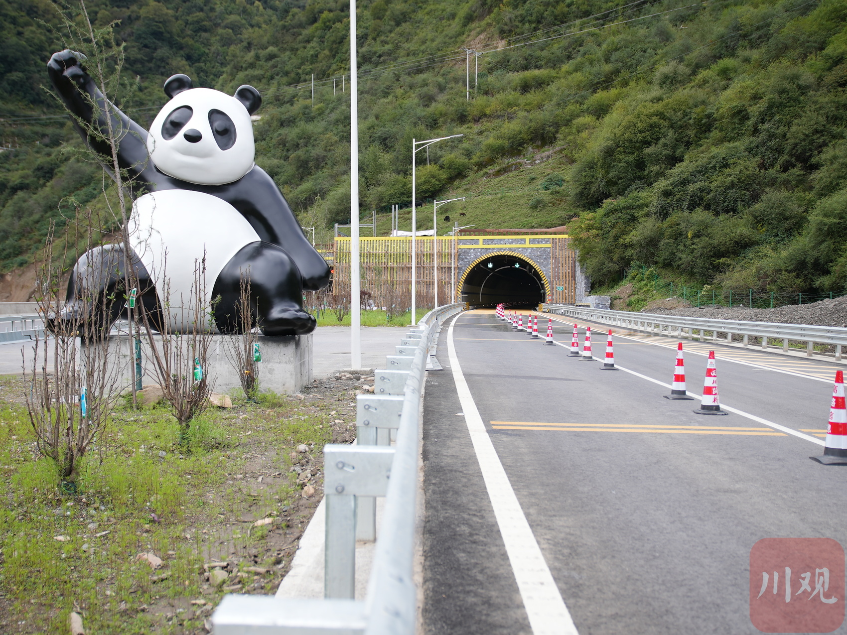隧道口的熊猫雕像