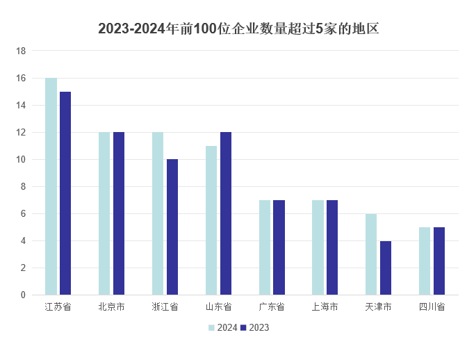 但纵观2024年度中国医药工业主营业务收入前100位企业名单,上榜企业数量超过5家的地区共7个,依次是江苏(16家)、北京(12家)、浙江(12家)、山东(11家)、上海(7家)、广东(7家)和天津(6家),四川位列第8,这与四川GDP总量在全国位列第5的成绩,显然还有一定差距。
