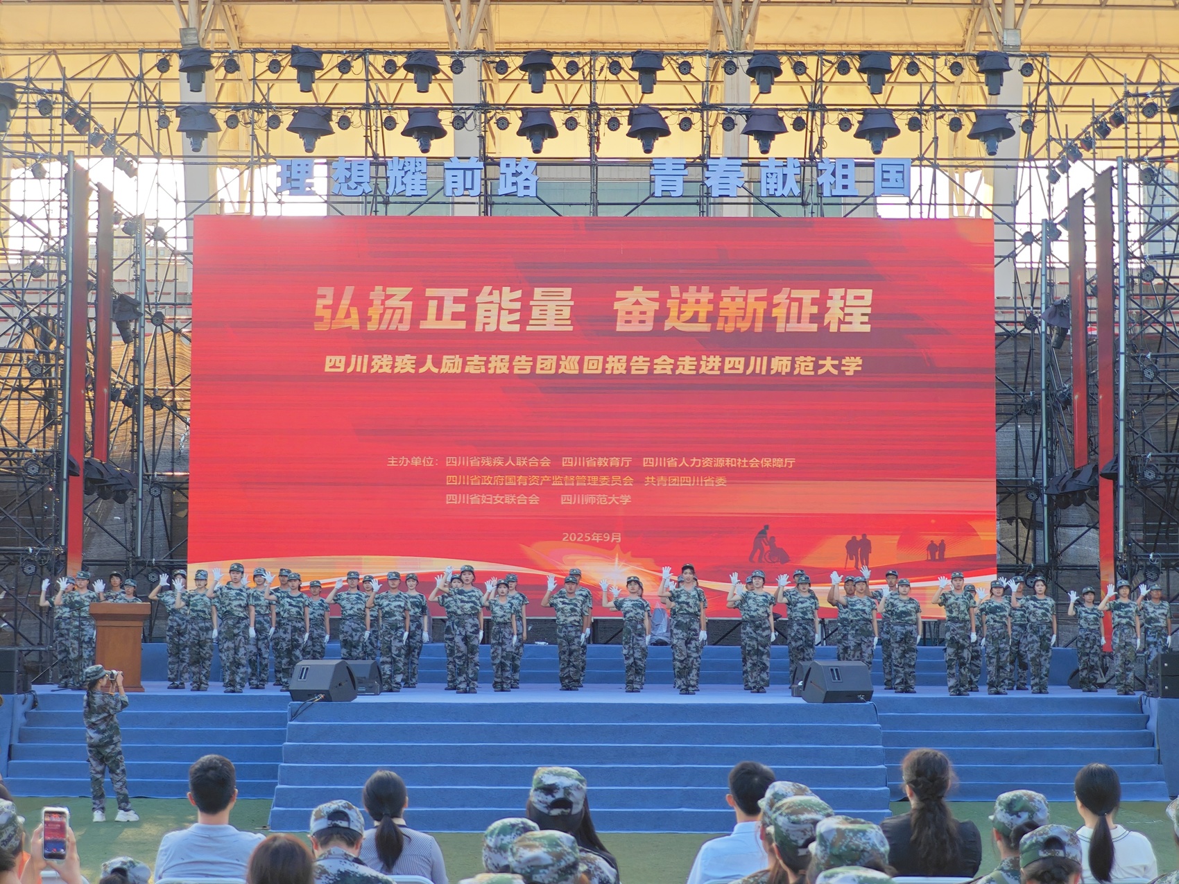 9月24日,由四川省残联、教育厅、人力资源社会保障厅、省国资委、团省委、省妇联联合举办的“弘扬正能量 奋进新征程”四川残疾人励志报告团巡回报告会在四川师范大学成龙校区举行,4000余名四川师范大学2025级新生现场聆听励志故事。