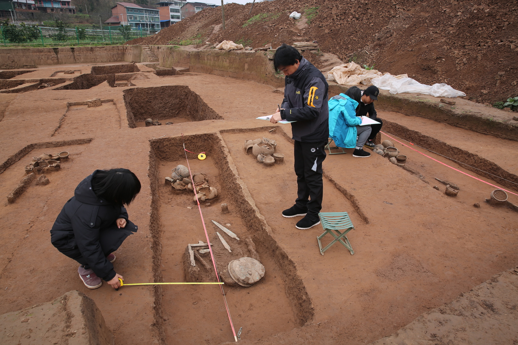 罗家坝遗址绘图工作照