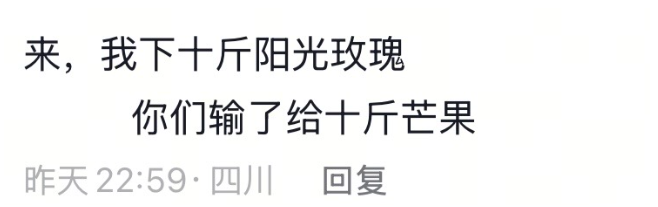 当然,也有网友为赛事“下注”。“来,我下10斤阳光玫瑰,你们输了给10斤芒果”,还有网友跟帖评论,“我加10斤石榴。”攀枝花芒果、会理石榴、西昌阳光玫瑰……得益于攀西地区阳光充足,昼夜温差大,各类水果口感丰富,畅销各地。
