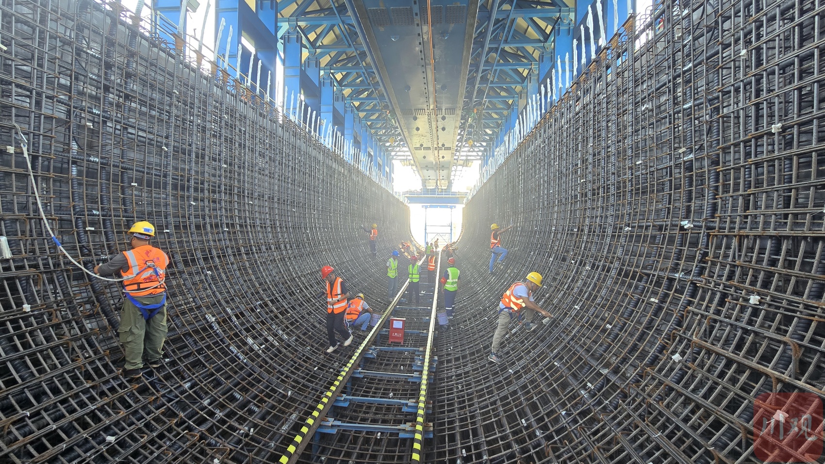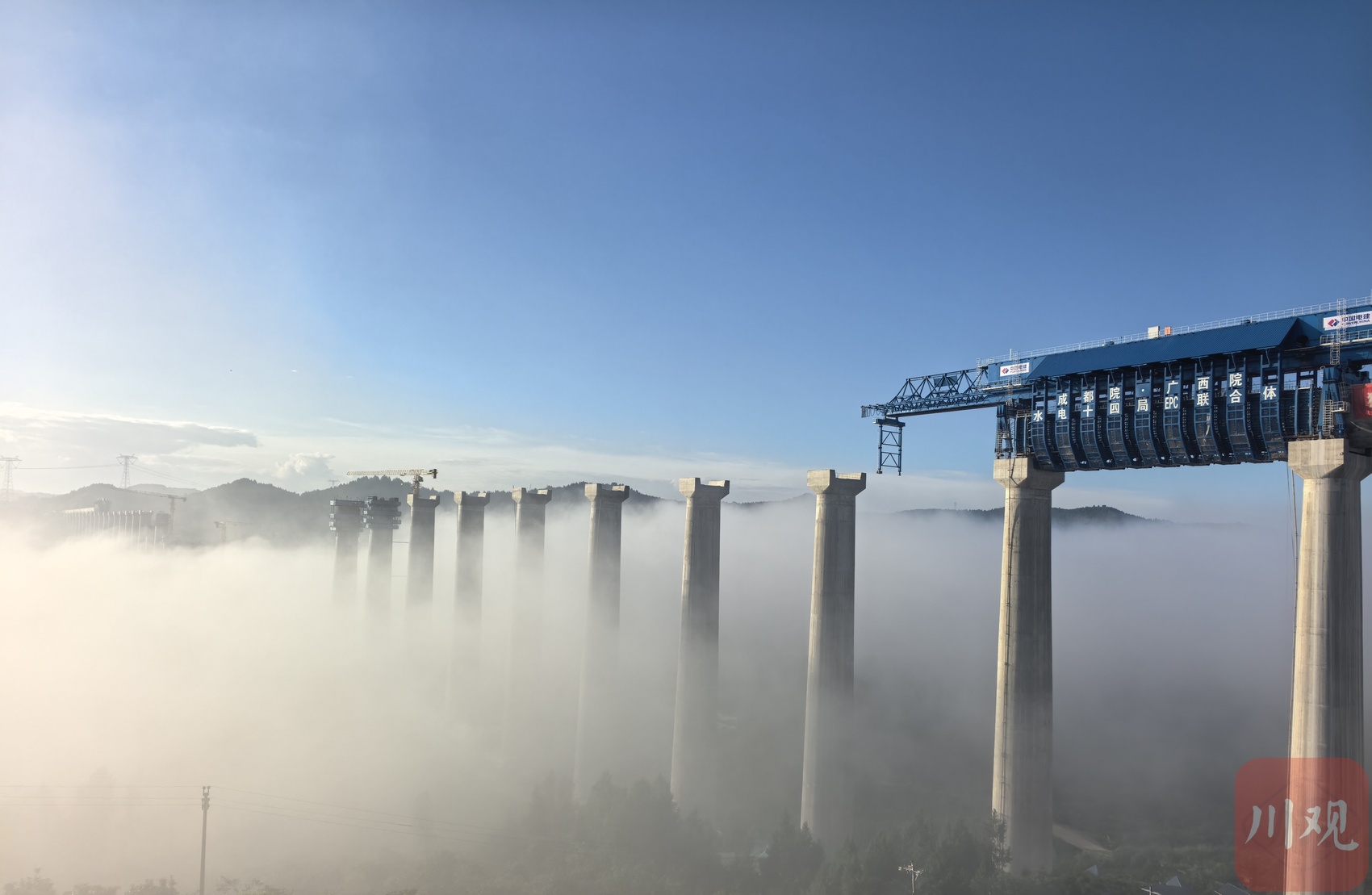 9月25日上午,位于南充市蓬安县境内的亭子口灌区一期工程桐子坝渡槽笼罩在薄雾中,高大的槽墩群上,两台大型造槽机相向而行,槽身内部火花四溅,多名施工人员同步施工,全力推进工程建设进度。