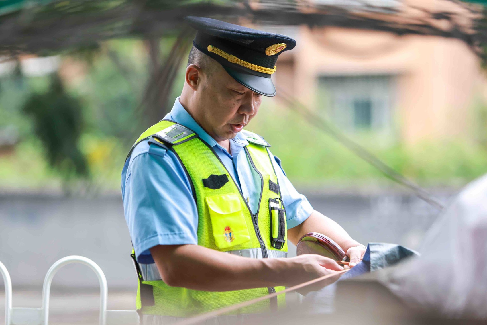大件运输车队从东方电气驶出后,德阳市交通运输综合行政执法支队三大队核对货物长、宽、高是否与报备的数据一致,检查主运输车辆是否存在隐患,再三叮嘱车队注意安全。“我们是第一关,绝不让车队带病上路。”三大队队员冯成说。
