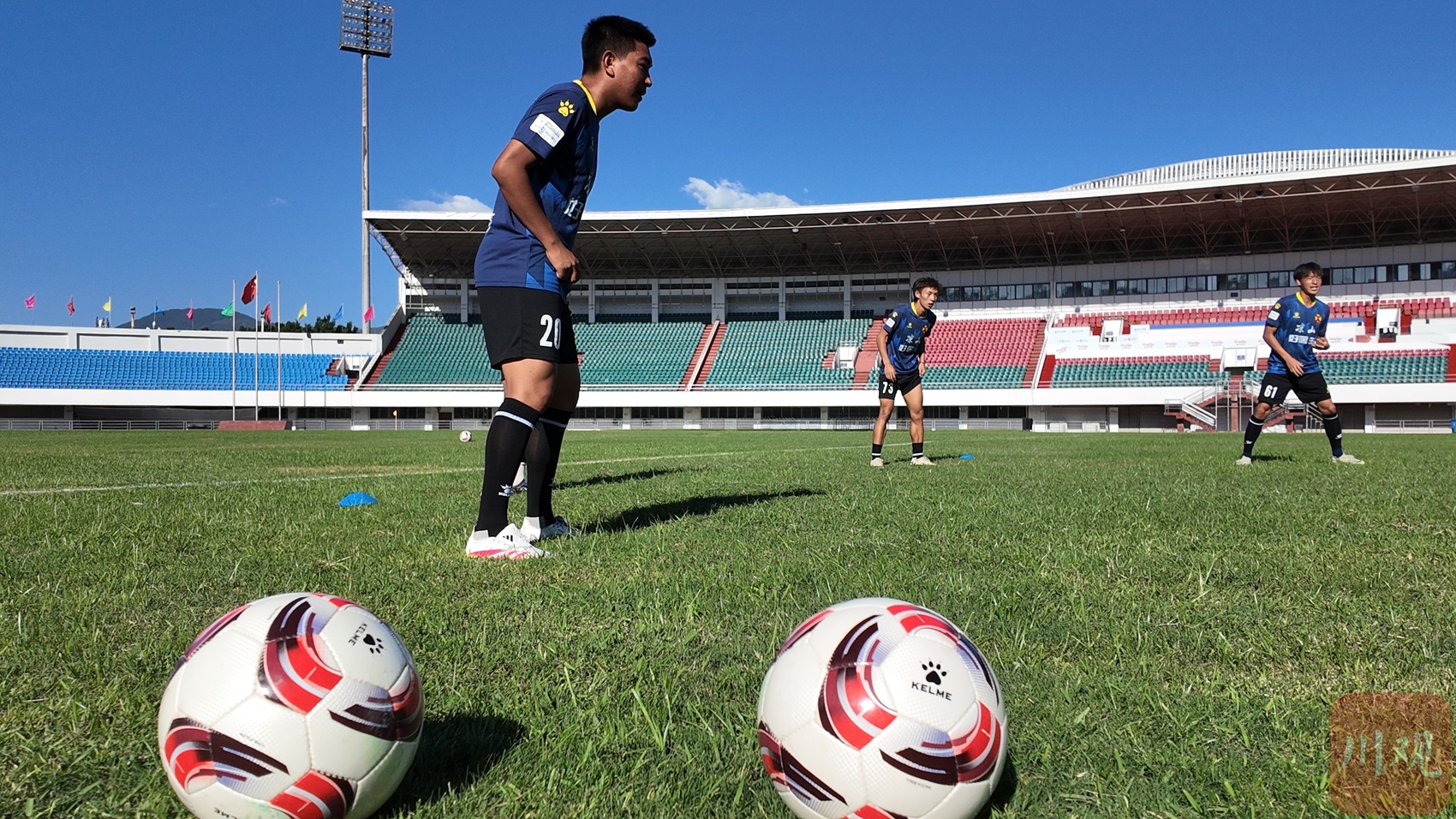 9月27日,川超凉山队将客场对阵攀枝花队,这是凉山队参加川超的首场比赛。25日,记者来到凉山民族体育场,烈日下,教练和队员们正在加紧训练,挥汗如雨。