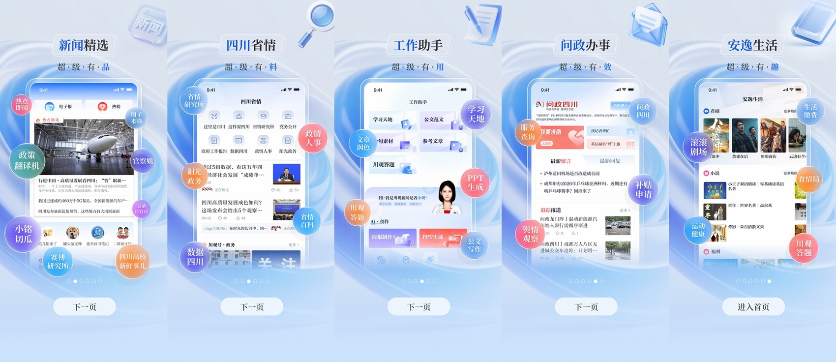 打开全新迭代升级的“川观新闻”12.0版,“新闻精选”板块,汇聚优质原创内容和本地新闻,超级有品;“四川省情”板块,党务政务信息及时完整,省情数据翔实准确,省情研究深入生动,超级有料;“工作助手”板块,从学理论到查资料、写总结,还有支持录音转写、公文写作、PPT制作、绘图配乐等的各种AI人工智能工具,超级有用;“问政办事”板块,拥有从政策咨询、问政服务、求助投诉、举报辟谣,到生活缴费的丰富服务,超级有效;“安逸生活”板块,文旅、美食、短剧、广播、健康、游戏等功能琳琅满目,超级有趣。超级“川观新闻”,已经从单纯的新闻信息提供者向社会生活连接者、服务者全面进阶,构建新闻资讯、理论学习、思想交流、文化传承、形象推广、社会治理、服务连接、数据聚合和技术创新九大平台,力争成为四川最大的移动端门户枢纽和数字生活底座。