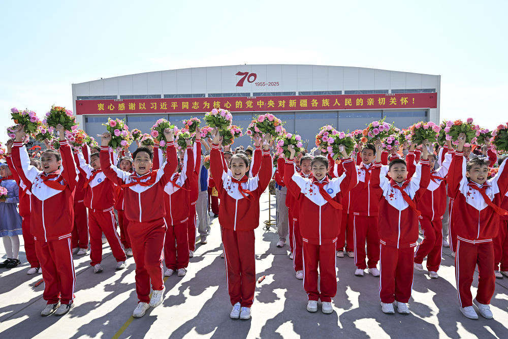 25日上午,习近平总书记在乌鲁木齐市出席新疆维吾尔自治区成立70周年庆祝大会,同新疆各族各界干部群众代表一道,热烈庆祝新疆维吾尔自治区成立70周年。