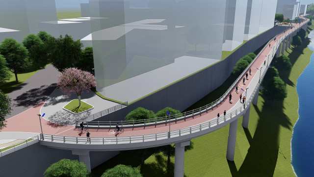 该工程从王家坝起采用桥梁沿州河北岸布置,设计应急通道长775米、宽6米,至江口大桥附近设置回车场。应急通道日常只允许行人通行,在发生突发状况时通行车辆,可发挥关键作用。
