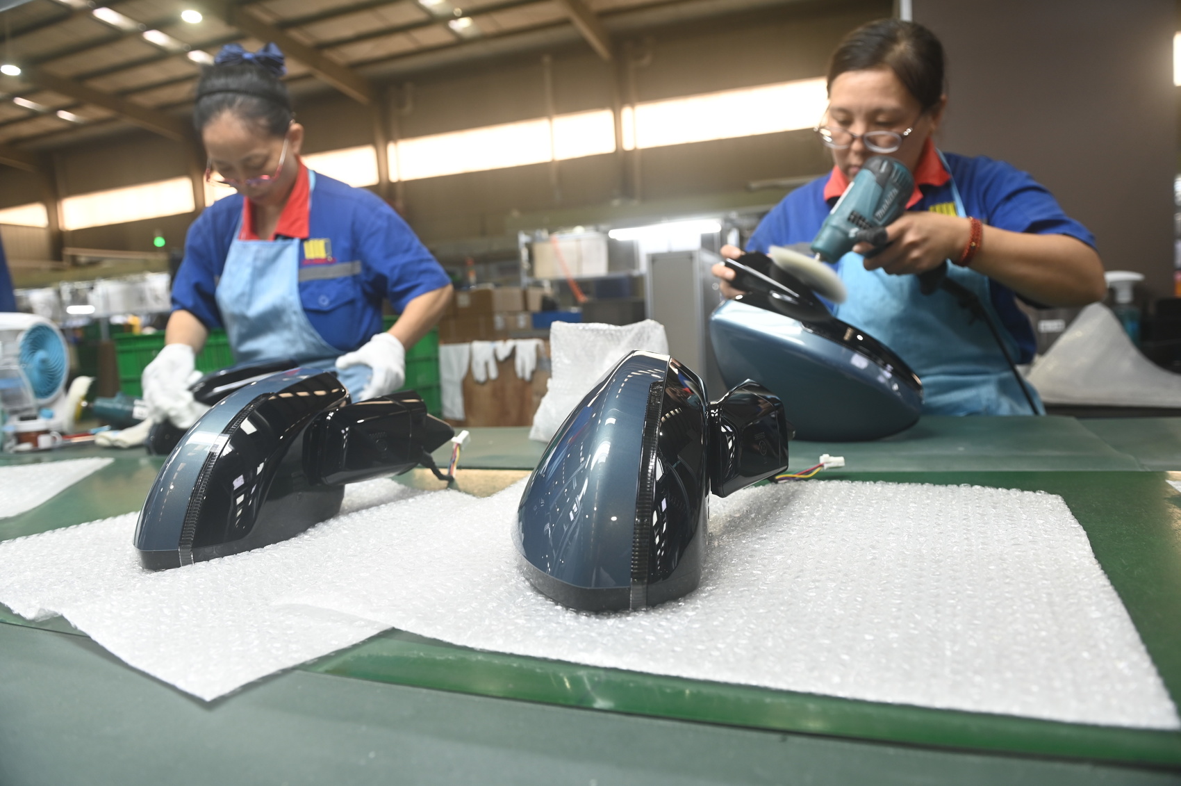9月25日,内江隆昌市三道桥工业园区的四川天视车镜有限责任公司总装车间内,经历注塑、制镜到总装等环节后,一只只汽车后视镜成功下线打包装车。