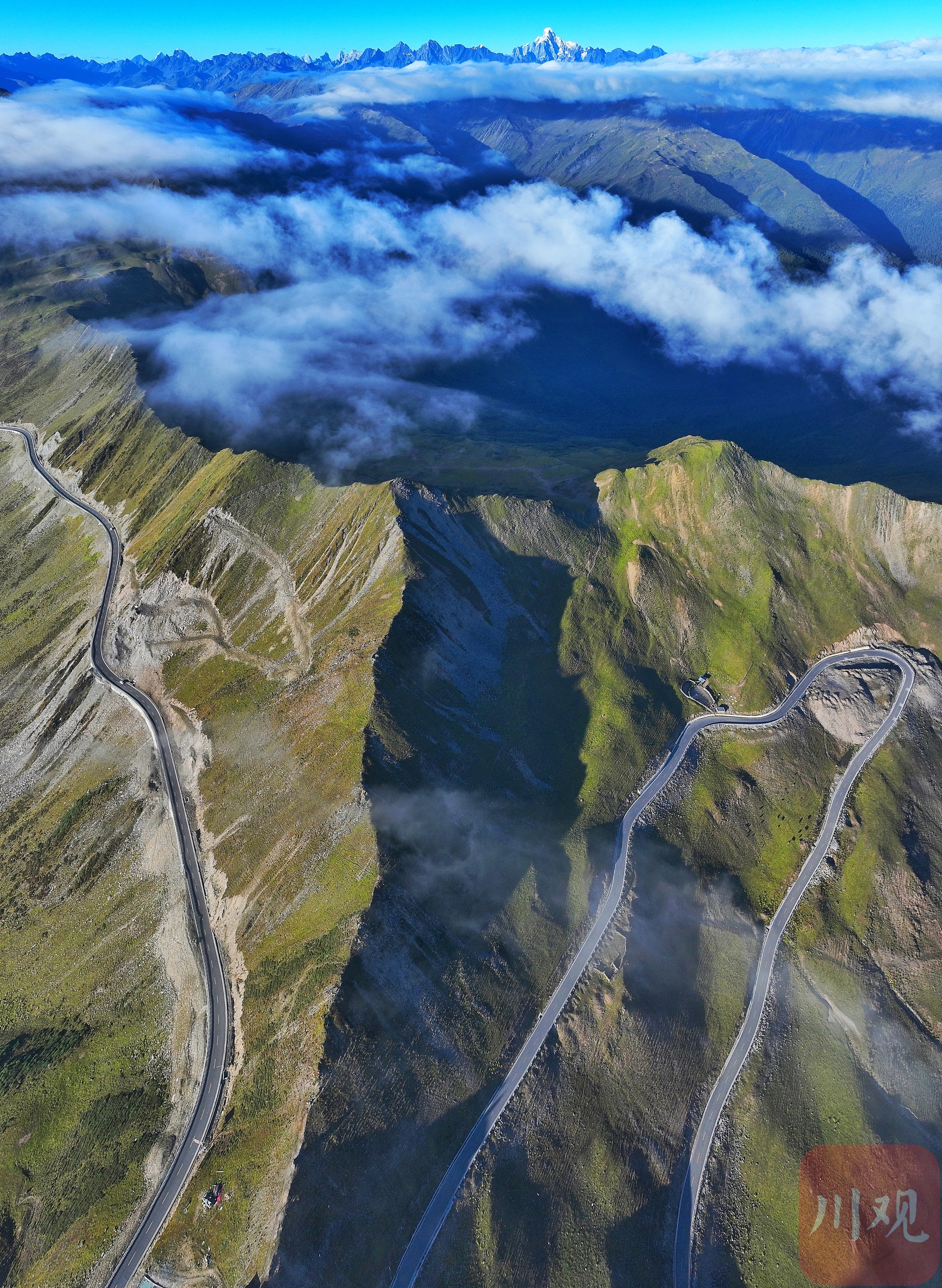 “终于拍到了!没想到看起来这么近。”9月25日下午5点,在海拔4114米的四川夹金山垭口,摩托车爱好者张先生通过无人机镜头,成功捕捉到四姑娘山幺妹峰与夹金山盘山公路同框的珍贵画面。镜头中,幺妹峰巍峨挺拔,云雾缭绕如仙境。近处,蜿蜒的国道盘卧山间,构成一幅壮美的画卷。