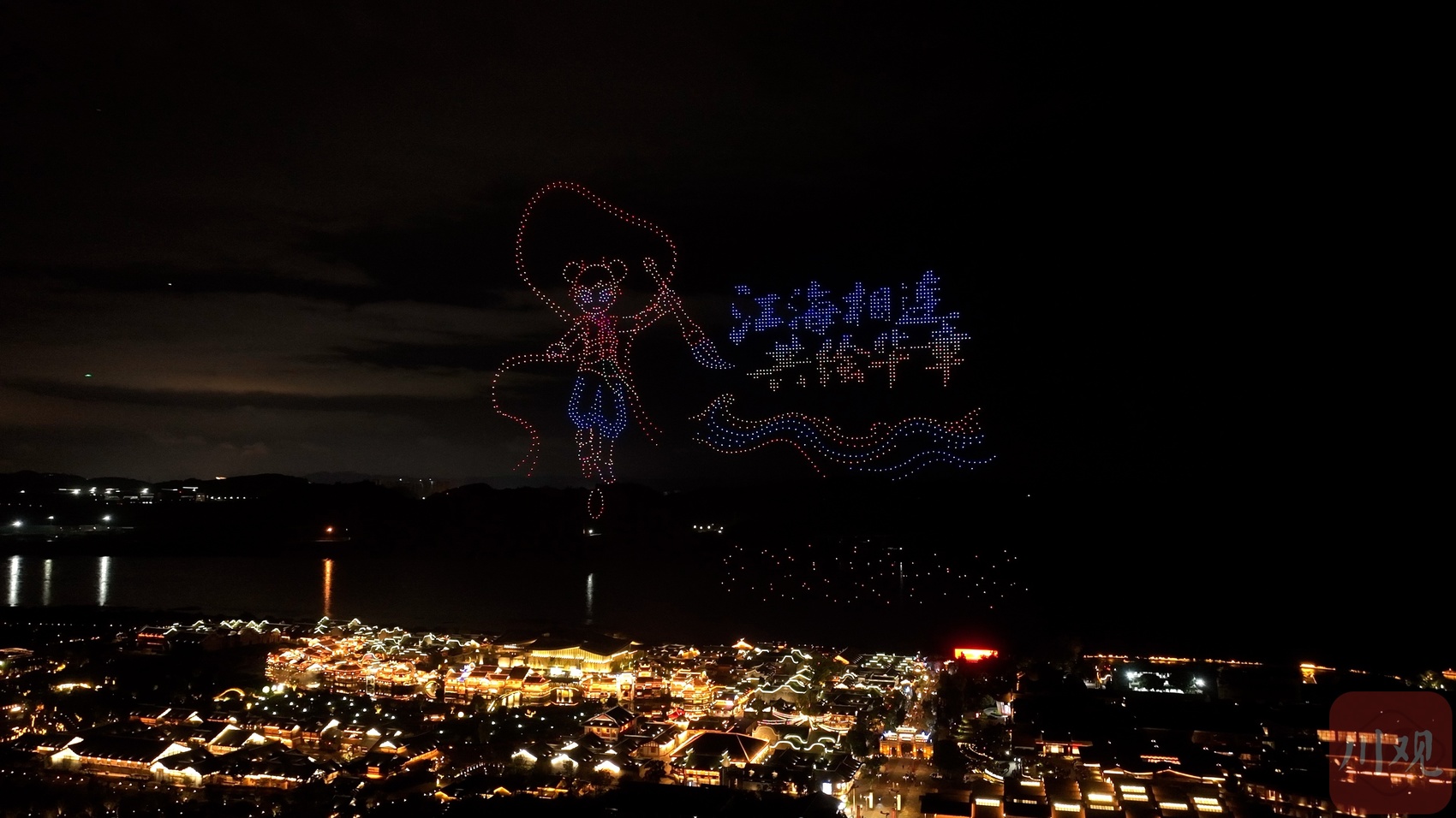 9月24日晚,2025“两岸情·李庄行”海峡两岸交流活动——“天际彩墨·飞舞长江”无人机光影秀精彩上演。