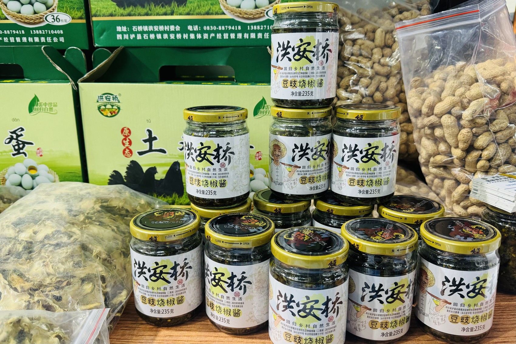 泸县石桥镇洪安桥村带着新品——豆豉烧椒酱亮相展会。