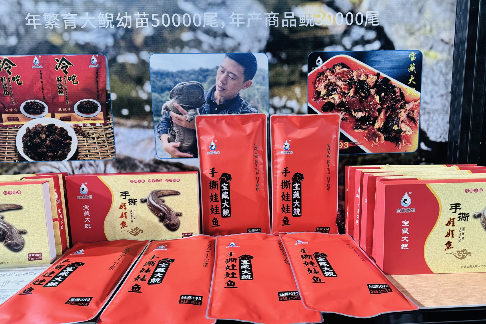泸县宝藏大鲵水产养殖有限公司带来了开袋即食的手撕娃娃鱼。