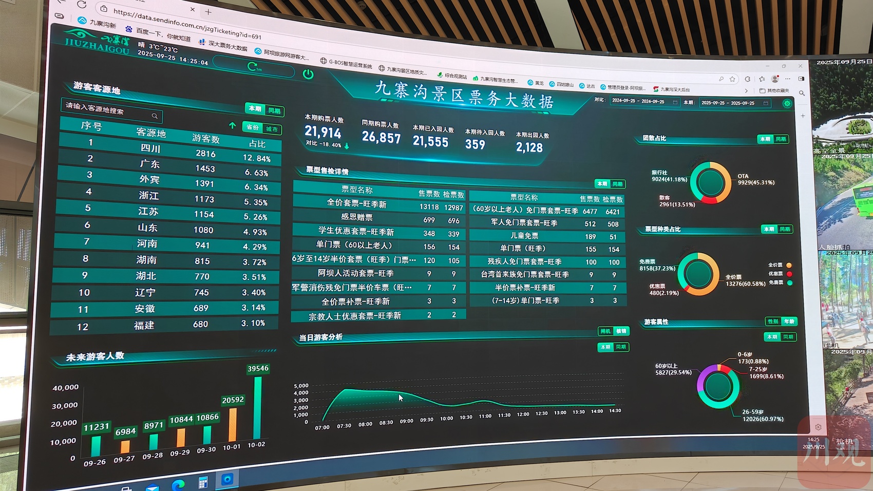 “现在可以看到10月1日有20000多人,10月2日已经有39000多人了。”9月25日,九寨沟管理局数字信息中心副主任张莹指着智慧管理平台上的实时数据介绍,“景区的最大容量是4.1万人次,在这之前游客都可以提前预约,预约后实名制入园。一旦达到最大容量,就会启动候补机制,确保每一位远道而来的游客‘不留遗憾’。”