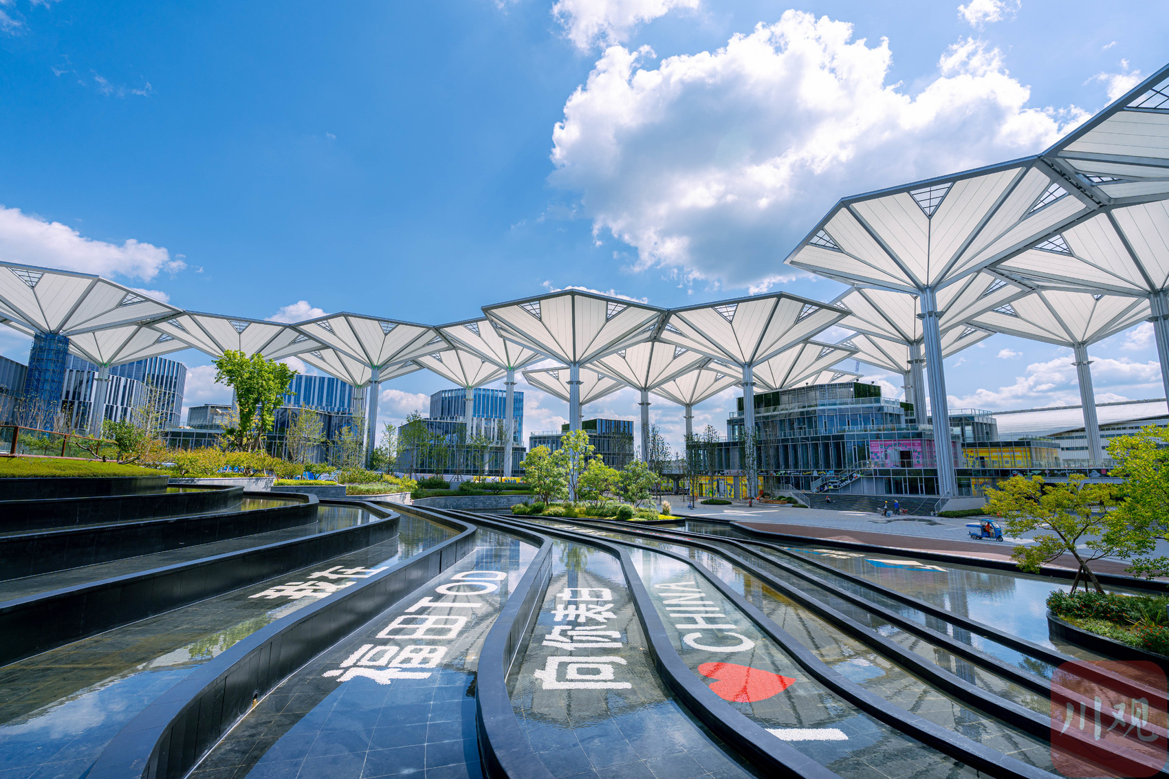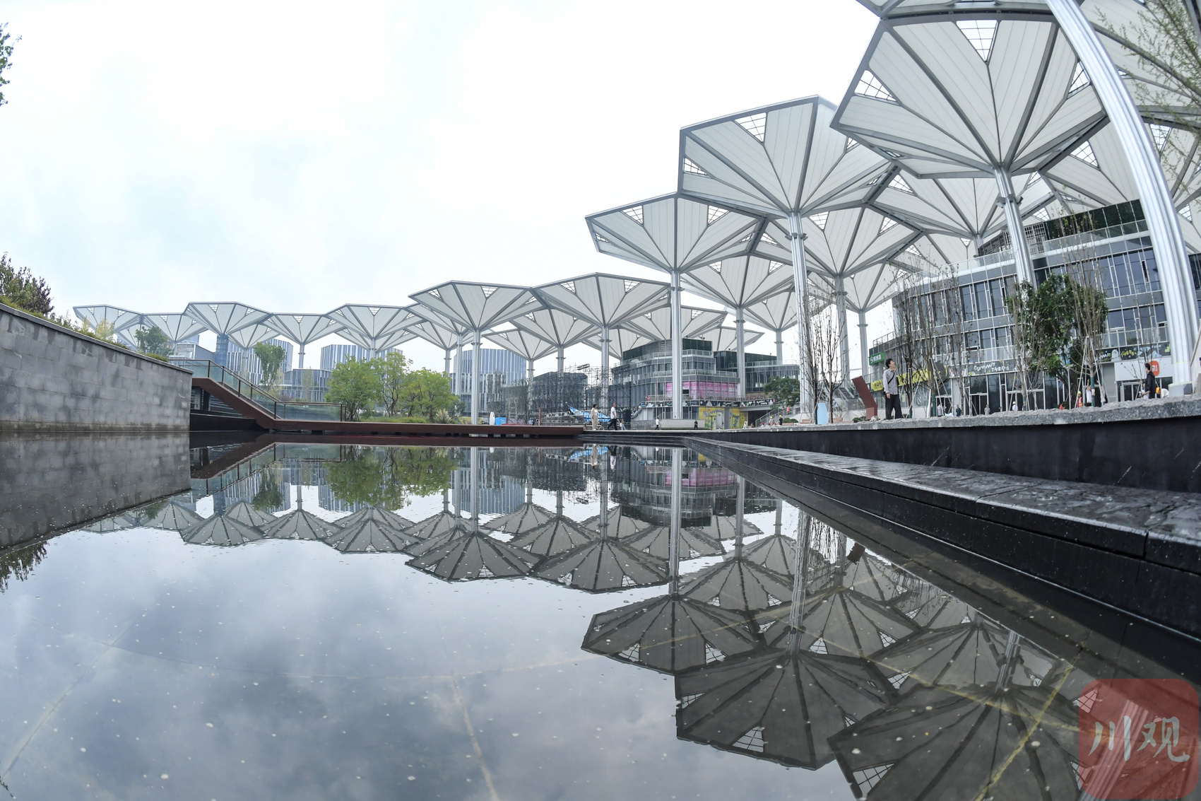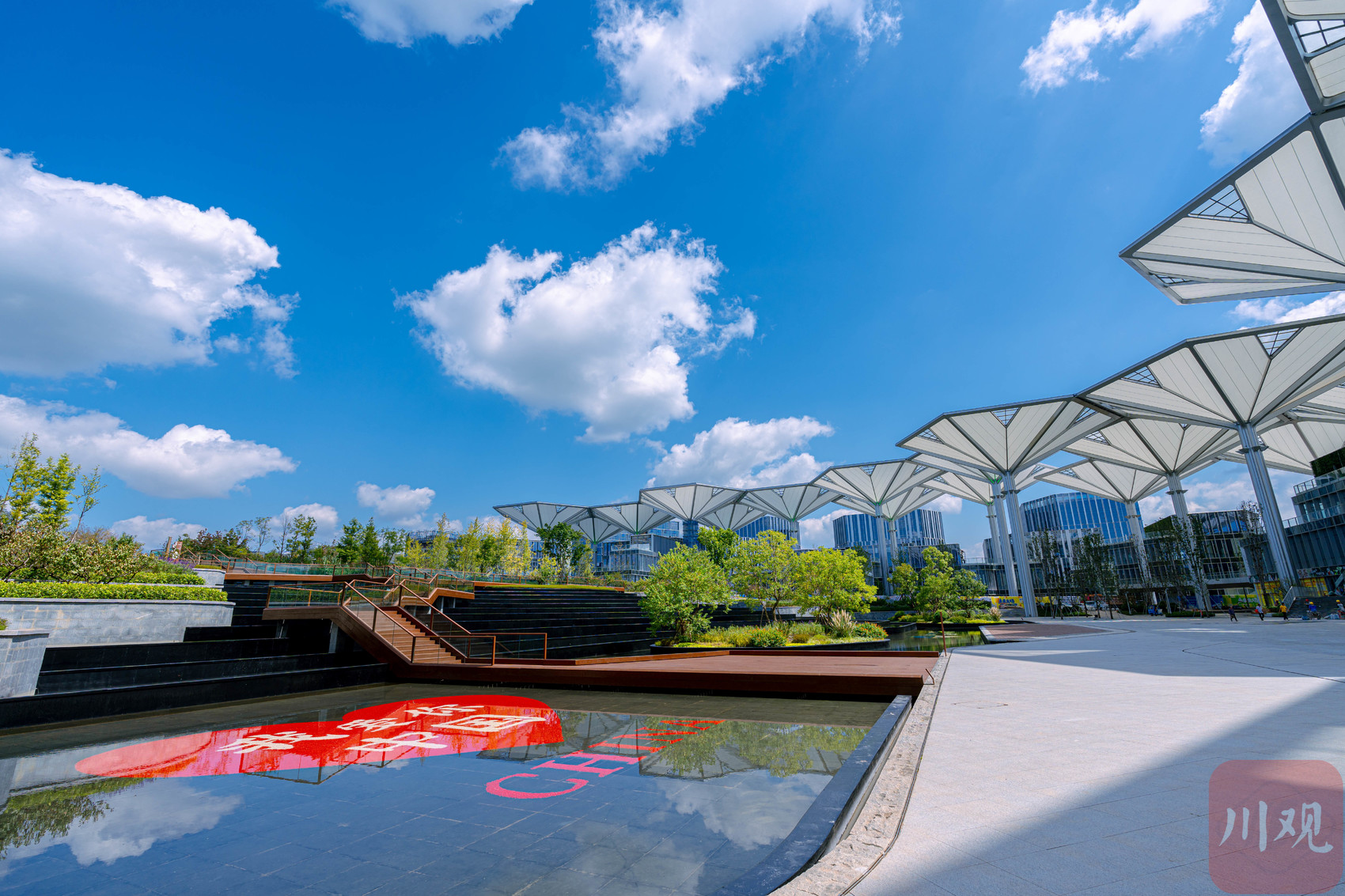 2025年9月24日,在成都地铁18、19号线福田站附近的成都未来科技城“福田TOD”,一栋栋别致的建筑在蓝天白云衬托下格外美丽。