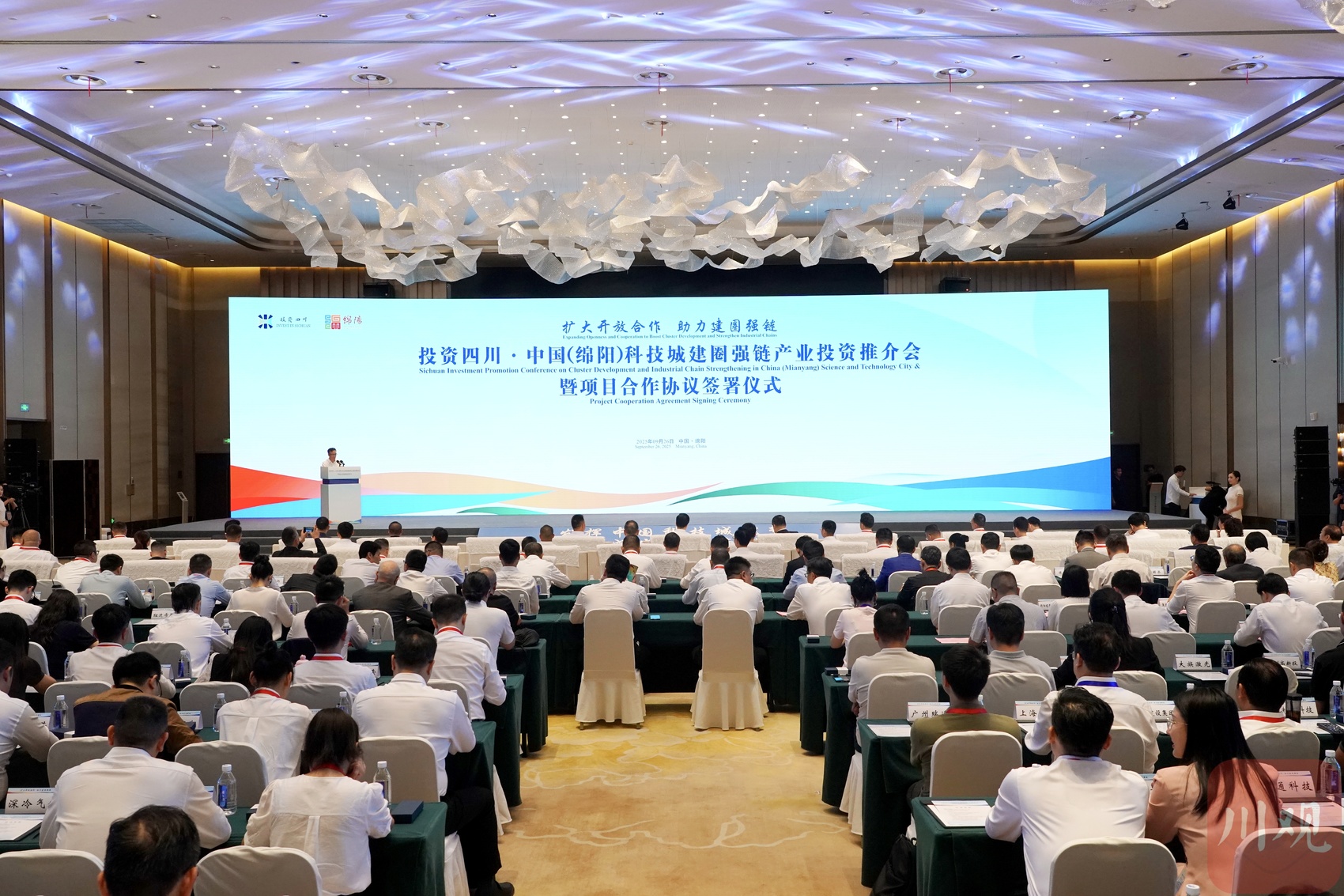 9月26日,第十三届中国(绵阳)科技城国际科技博览会开幕当天,投资四川·中国(绵阳)科技城建圈强链产业投资推介会同步举行,吸引了180余家知名企业及商协会参与,现场签约55个项目,协议投资总额275.35亿元。