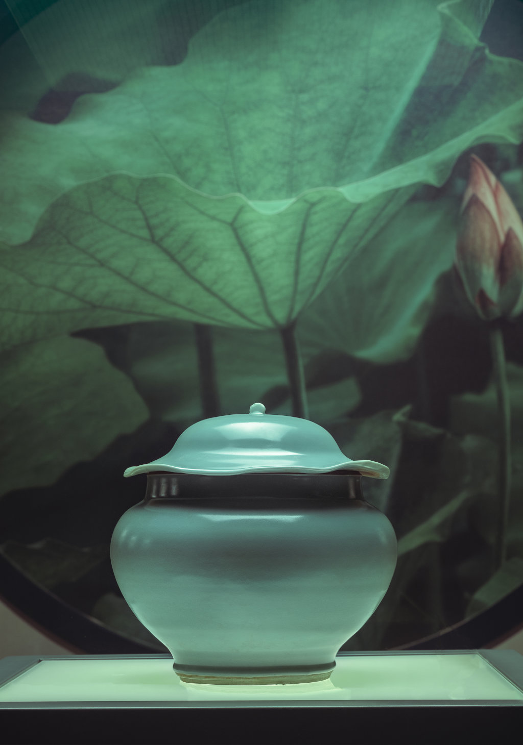 南宋龙泉窑青釉荷叶盖罐。遂宁市文化广播电视体育和旅游局供图