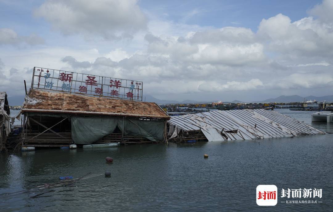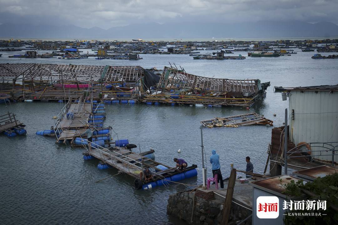 9月26日上午,遭台风损毁的海陵岛马尾岛沿渔排。