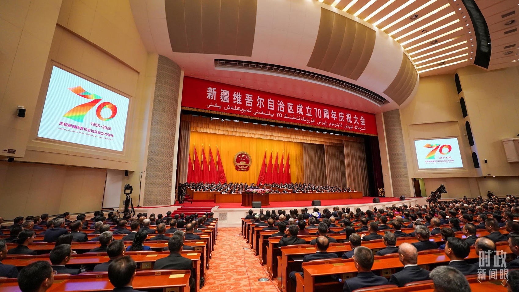 金秋时节的乌鲁木齐,洋溢着节日的喜庆氛围。25日上午,新疆维吾尔自治区成立70周年庆祝大会在新疆人民会堂隆重举行。