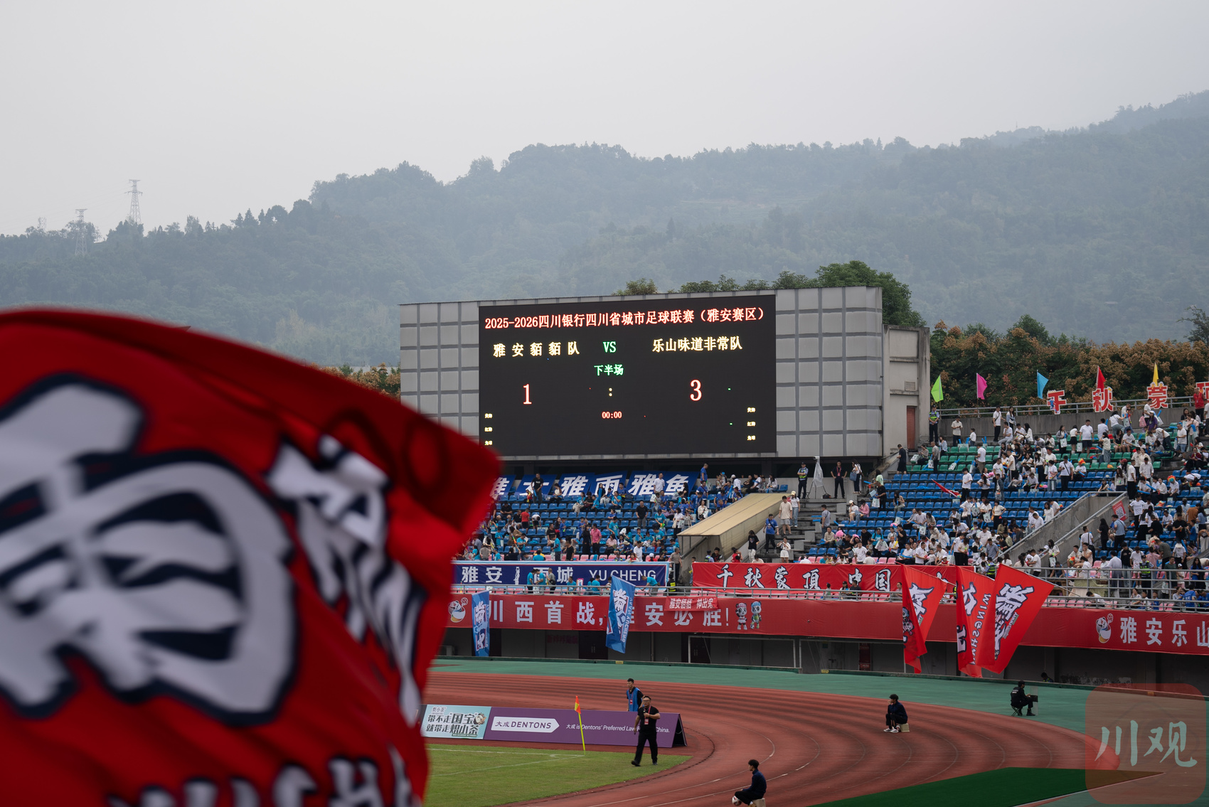 9月27日下午,2025/2026四川省城市足球联赛(简称“川超”)川西赛区首场比赛在雅安市体育中心举行。主场作战的雅安貊貊队迎战乐山味道非常队,最终以1:3告负。