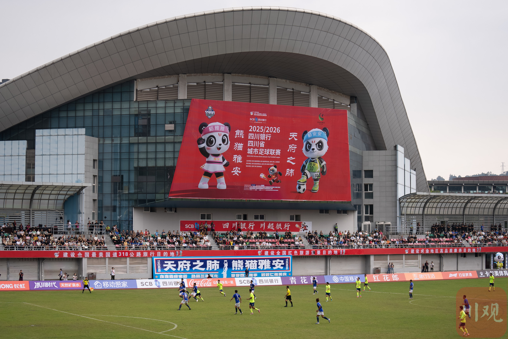 比赛现场,各类大熊猫元素遍布赛场内外,营造出浓厚的“熊猫氛围”,让球迷在观赛的同时,也能感受到雅安独特的地域文化魅力。
