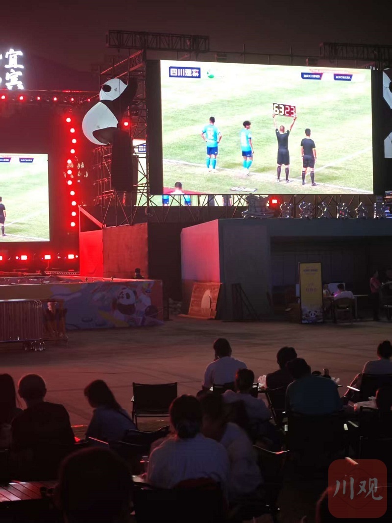 “球进了!宜宾雄起!”9月27日晚,四川省城市足球联赛(宜宾赛区)(以下简称“川超”)宜宾长江首城队的首轮比赛主场对战自贡灯城燊龙队正式开赛。与此同时,在长江音悦街央视中秋晚会录制场地,川超“第二现场”观赛活动同步开启,通过户外超大屏幕实时转播赛况。